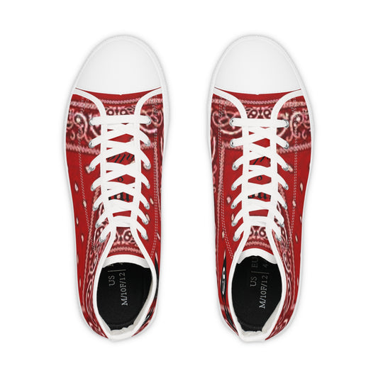 Vibrant Red Bandana High Top Sneakers | Casual, Streetwear, Gift for Him, Summer Style, Unique Footwear